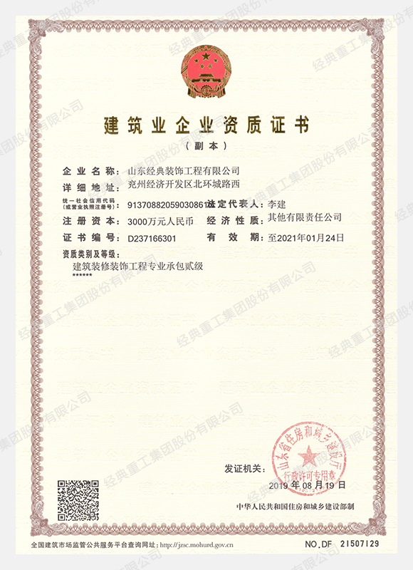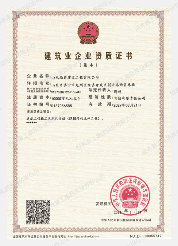 • 建筑工程施工總承包壹級資質(zhì)