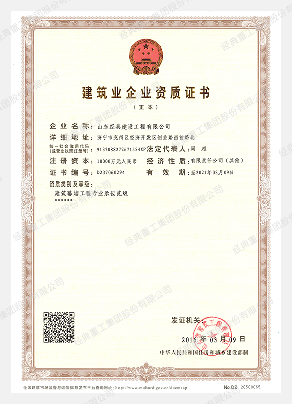 • 建筑幕墻工程專業(yè)承包貳級資質(zhì)