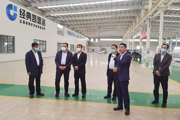 5月10日,濟寧市工業(yè)和信息化局局長屈耀武帶領制造強市指揮部領導一行到經(jīng)典集團進行現(xiàn)場調研。兗州區(qū)委常委、副區(qū)長張銳,經(jīng)典集團董事長苗樹文等陪同調研。