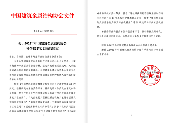 5月11日,中國建筑金屬結構協(xié)會發(fā)布公告,山東經(jīng)典重工集團股份有限公司《裝配式鋼結構住宅關鍵技術研究及產(chǎn)業(yè)化應用》項目榮獲2022年中國建筑金屬結構協(xié)會科學技術獎一等獎。