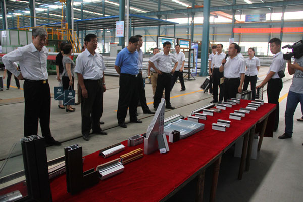 在觀摩會現場,與會領導首先聽取了劉董事長關于企業發展情況的匯報,隨后深入公司年產10萬噸高端鋁型材的生產車間,并現場聽取了項目負責人的情 況介紹。通過實地觀摩和聽取匯報,觀摩團領導對我公司能夠按照科學發展觀和區委區政府關于跨越發展的總要求,堅持解放思想,抓住機遇,高點定位,高點建設,開拓進取,攻堅破難,加快發展的做法給予充分肯定,并對我公司生產經營所取得的成績給予高度評價和贊賞。