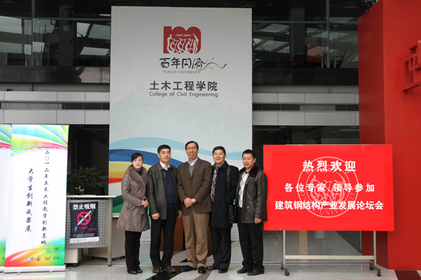 2012年12月15日訊,為了推動鋼結(jié)構(gòu)設(shè)計(jì)與施工的和諧發(fā)展,上海同濟(jì)大學(xué)主辦了建筑鋼結(jié)構(gòu)產(chǎn)業(yè)發(fā)展論壇會。在集團(tuán)公司苗董事長的帶領(lǐng)下,參加了此次論壇會。