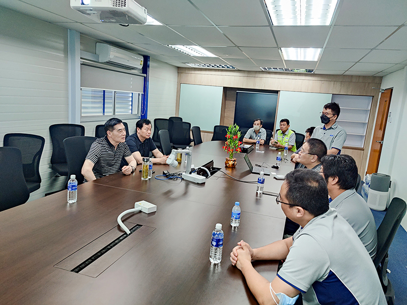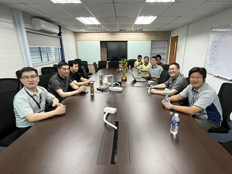 中國(guó)京冶建設(shè)工程(新加坡)有限公司執(zhí)行副總裁許亞男,執(zhí)行副總裁陳曉冬,鋼結(jié)構(gòu)高級(jí)運(yùn)營(yíng)經(jīng)理翟東,鋼結(jié)構(gòu)運(yùn)營(yíng)副經(jīng)理胡明陪同參觀座談。