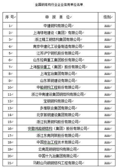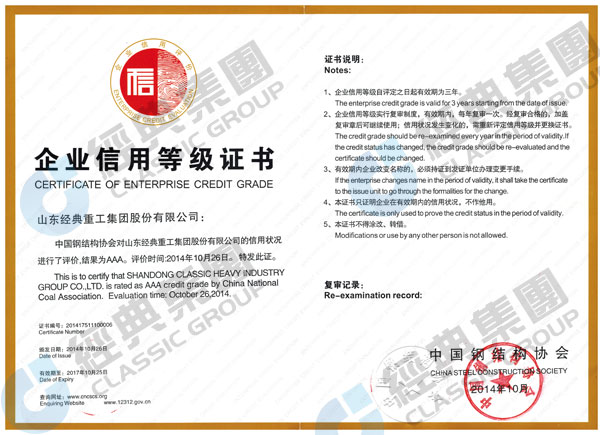 2014年10月26-27日,在南京國際會議中心隆重舉辦的中國鋼結(jié)構(gòu)協(xié)會成立三十周年紀念大會暨六屆四次理事會擴大會議上,山東經(jīng)典重工集團股份有限公司獲得首批全國鋼結(jié)構(gòu)行業(yè)AAA級信用企業(yè)。