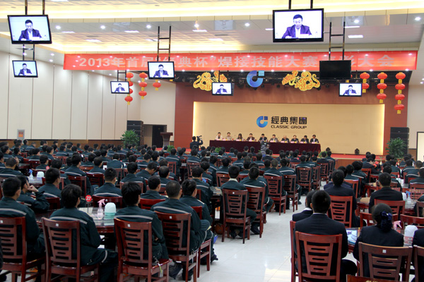 孟主席在發(fā)言中指出,經典集團致力于鋼結構、建筑設計以及幕墻裝飾、物資貿易、紅木家俱等多元化產業(yè),在吸納社會就業(yè)、穩(wěn)定社會就業(yè)和造福社會中承擔了應有的責任,發(fā)揮了巨大作用;經典集團快速發(fā)展的同時,熱衷于公益事業(yè),積極弘揚“經典事業(yè) 愛心傳承”的企業(yè)文化,為我市精神文明建設做出了積極貢獻;經典集團通過舉辦首屆“經典杯”焊接崗位技能大賽,營造了濃厚的學習培訓氛圍,在公司內迅速掀起了比業(yè)務、學技術的干事創(chuàng)業(yè)熱潮。