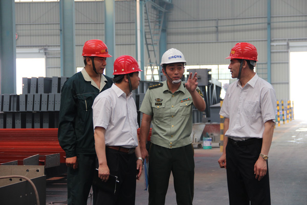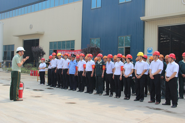 演習(xí)后,消防大隊(duì)房隊(duì)長(zhǎng)到生產(chǎn)車間給予合理的指導(dǎo)與建議
