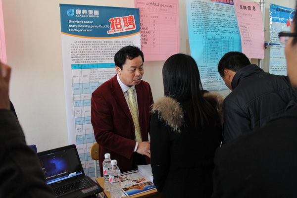 3月20日,經(jīng)典集團(tuán)組織參加青島理工大學(xué)2013年春季畢業(yè)生雙選會(huì)。我公司董事長(zhǎng)苗樹文,總經(jīng)理杜福生等領(lǐng)導(dǎo)一同參加了此次雙選會(huì)。在雙選會(huì)現(xiàn)場(chǎng)與畢業(yè)生面對(duì)面進(jìn)行親切交流,對(duì)于企業(yè)和畢業(yè)生來(lái)說(shuō),是一次很好的雙選機(jī)會(huì),更是一場(chǎng)供需見面的盛宴。見面會(huì)現(xiàn)場(chǎng)人潮涌動(dòng),異常火爆,畢業(yè)生與用人單位進(jìn)行積極交流、雙向選擇,成效十分顯著。