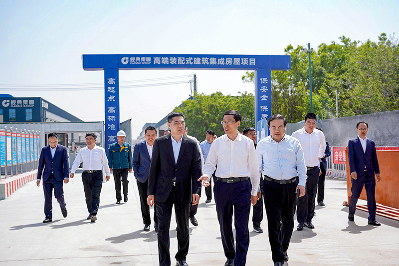 苗樹文主席現場介紹了新項目建設的有關情況。去年以來,經典集團科學規劃布局,重視新項目建設,實施科學化管理,有效提升了安全生產管理水平,加快了項目建設步伐,不斷加大資金投入,購置行業先進生產線裝備,推進裝配式建筑產業鏈延伸,為打造濟寧裝配式鋼結構新型建筑產業集群打下了堅實基礎。